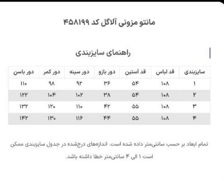 (جدول راهنمای سایزبندی در گالری چک شود)