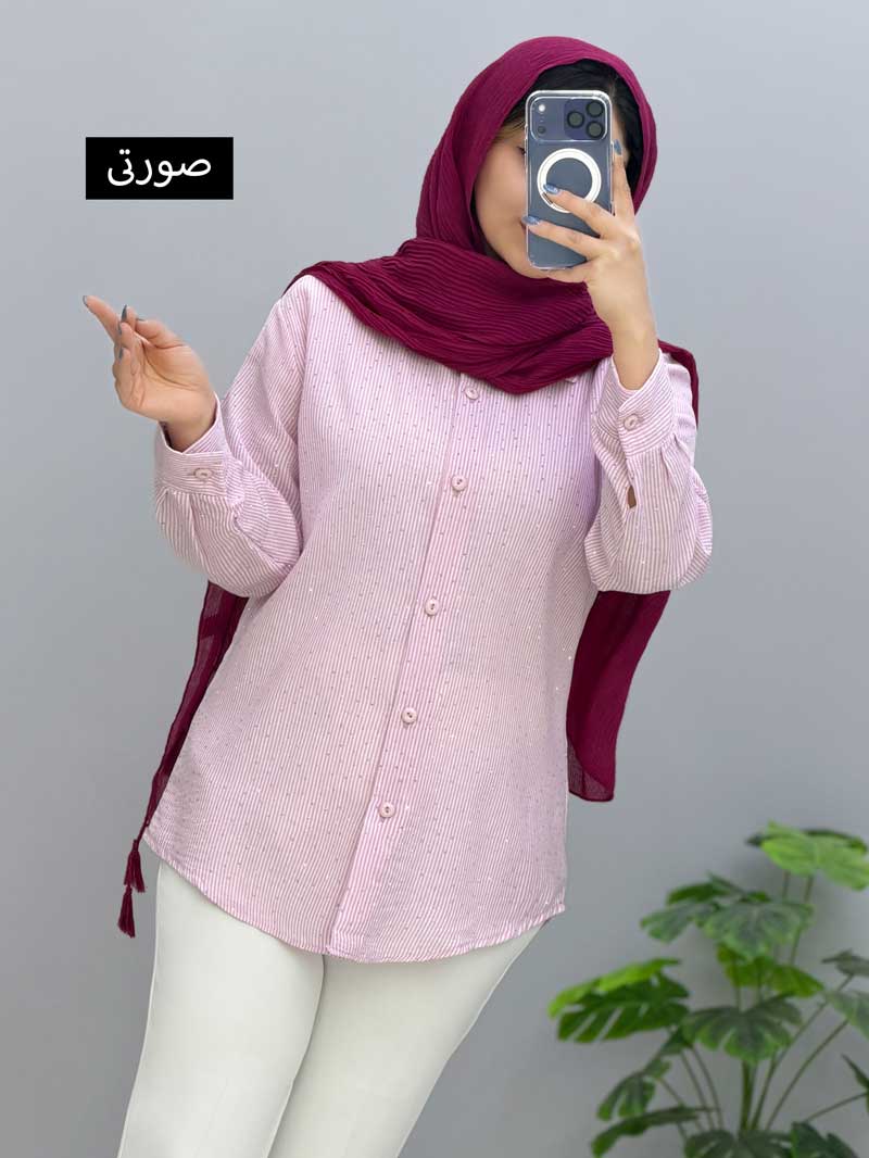 شومیزجلو دکمه لینن درخشان کد2694075