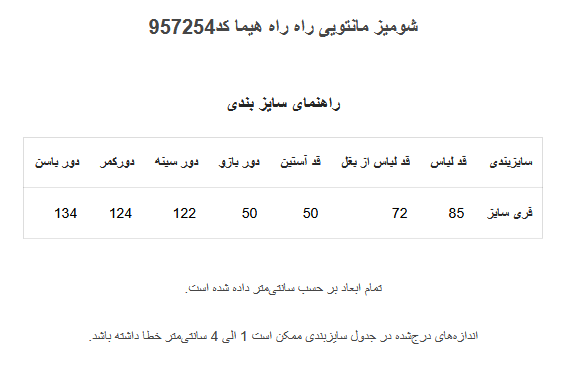 (جدول راهنمای سایزبندی در گالری چک شود)