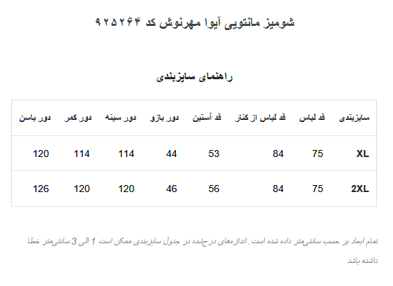 (جدول راهنمای سایزبندی در گالری چک شود)