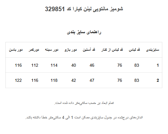 (جدول راهنمای سایزبندی در گالری چک شود)