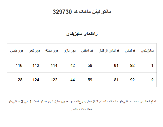 (جدول راهنمای سایزبندی در گالری چک شود)
