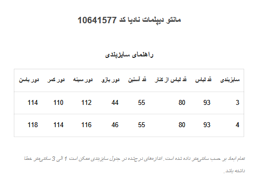(جدول راهنمای سایزبندی در گالری چک شود)