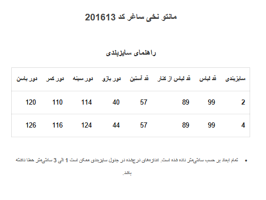 (جدول راهنمای سایزبندی در گالری چک شود)