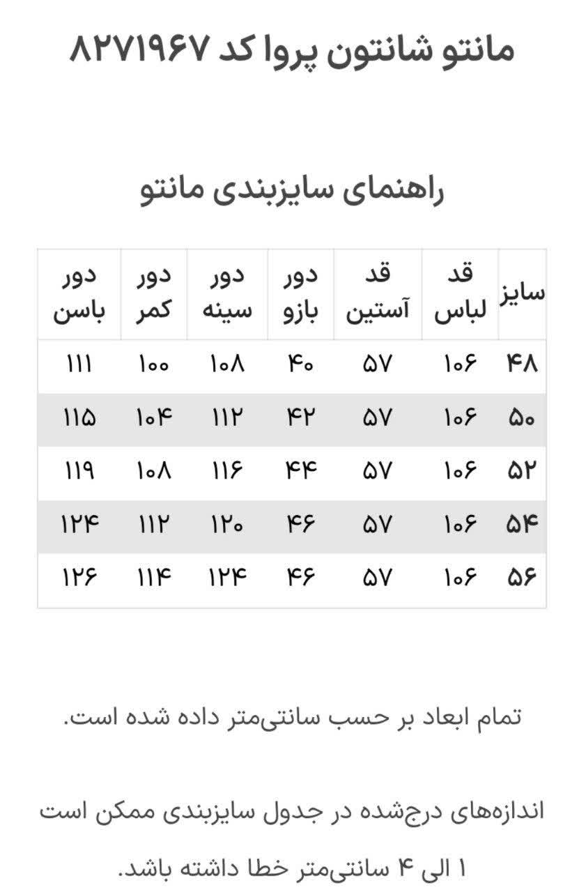(جدول راهنمای سایزبندی در گالری چک شود)