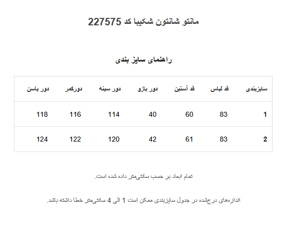 (جدول راهنمای سایزبندی در گالری چک شود)