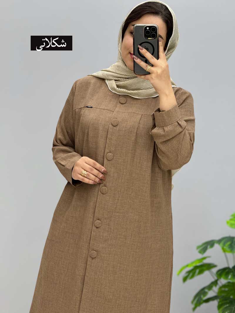 ست مانتو شلوارلینن شانتون دکمه چوبی کد 9253004