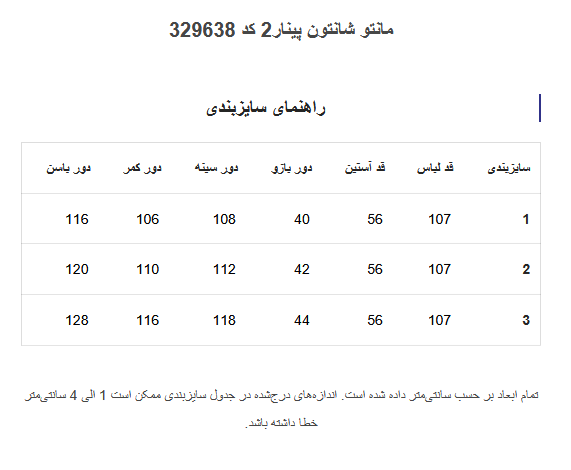 (جدول راهنمای سایزبندی در گالری چک شود)
