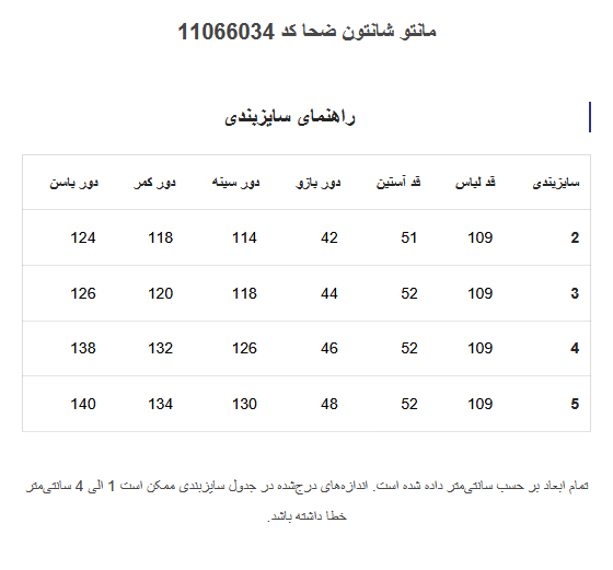 (جدول راهنمای سایزبندی در گالری چک شود)